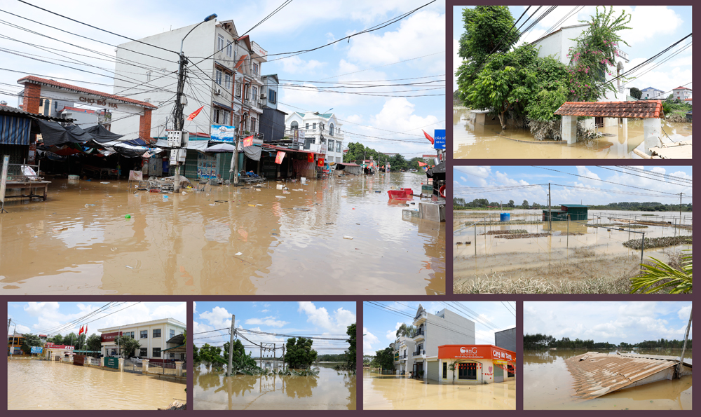 BẮC NINH - Biết xã Bố Hạ bị lũ hoành hành từ mấy hôm trước nhưng sáng 11/10 chúng tôi mới đặt chân được đến đây. Bởi nhiều tuyến giao thông đến xã bị ngập nước, không thể nào qua được. Đứng trên cầu Bố Hạ phóng tầm mắt, tứ bề đều là nước đục, lòng sông Thương cuộn chảy ào ào, làng quê đầy bùn đỏ, xác xơ…