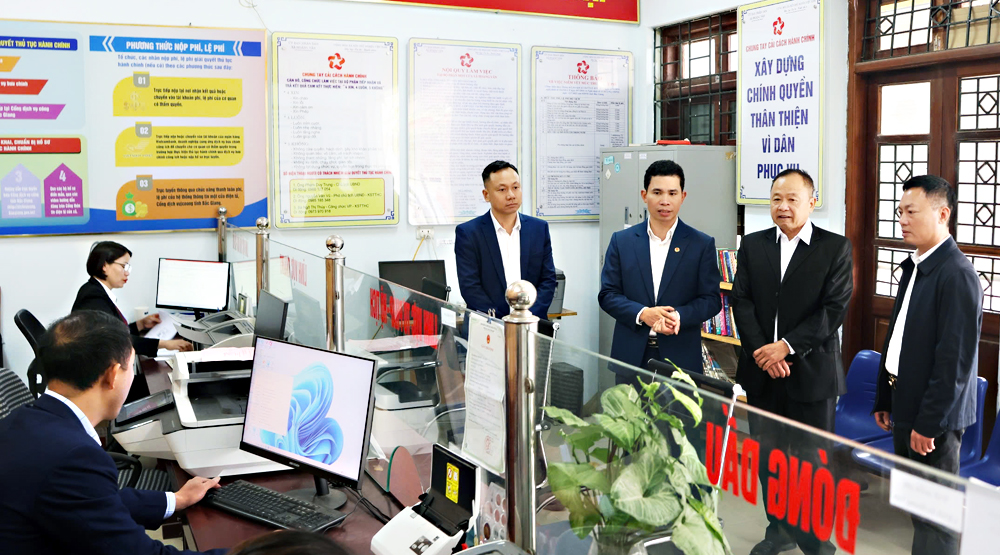 Đồng chí Hoàng Công Bộ, Chủ tịch UBND huyện Hiệp Hòa kiểm tra việc thực thi công vụ tại các xã mới sáp nhập. |