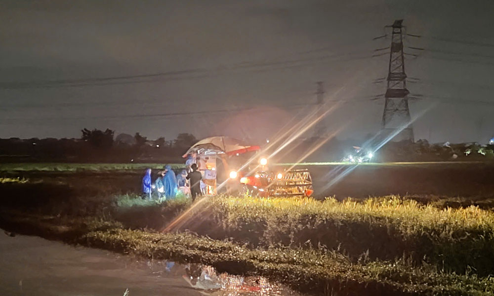 Quần áo ướt sũng vì mưa và bùn đất nhưng mọi người làm việc không ngừng nghỉ, gắng sức nhanh tay kéo lúa về nhà cho bà con. Anh An Ngọc Kiên, Tiểu đội trưởng Tiểu đội dân quân thôn Đồng Đạo có mặt từ sớm để giúp bà con gặt lúa. Anh kể: “Năm ngoái bão Yagi về, cánh đồng nơi đây ngập trắng xóa. Lần này nước lũ lên nhanh, nguy cơ ngập là rất lớn; chỉ khác là đồng ruộng sáng rực ánh đèn, tiếng máy gặt chạy xình xịch như muốn xé toang màn đêm yên tĩnh và nỗi lo lũ tràn bất cứ lúc nào. Ai cũng hăng hái, chẳng ai nghĩ đến mệt mỏi”.