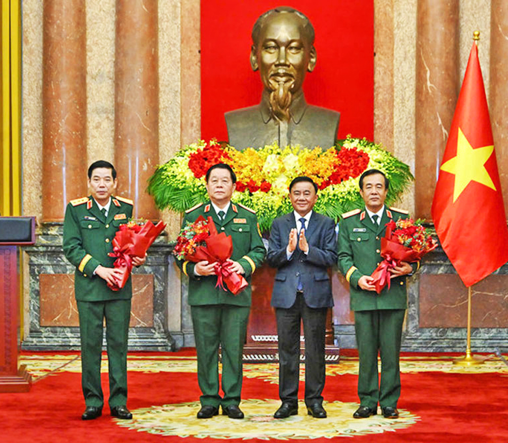 Chủ tịch nước nêu rõ, ba đồng chí được bổ nhiệm, thăng quân hàm là những cán bộ ưu tú của Đảng, Nhà nước và Quân đội nhân dân; đều được đào tạo cơ bản, có hệ thống, trưởng thành từ đơn vị, cơ sở; được rèn luyện, thử thách qua rất nhiều cương vị, lĩnh vực, môi trường công tác khác nhau, dù trong bất cứ điều kiện, hoàn cảnh nào, các đồng chí luôn thể hiện là những cán bộ có bản lĩnh chính trị vững vàng, phẩm chất đạo đức cách mạng trong sáng; gương mẫu, tận tụy, trách nhiệm; luôn hoàn thành tốt và xuất sắc mọi nhiệm vụ được giao.