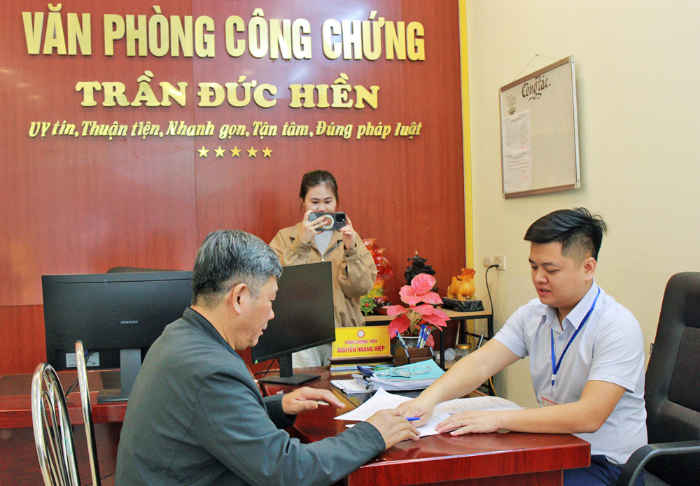 Văn phòng Công chứng Trần Đức Hiền thực hiện quy định ký, chụp ảnh với công chứng viên. |