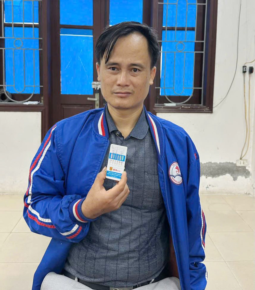 Đối tượng Thân Đức Lợi tại Công an xã Tân Yên. |