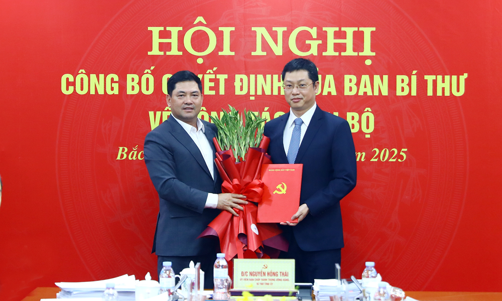 Thừa ủy quyền của Ban Bí thư, đồng chí Nguyễn Hồng Thái công bố và trao Quyết định chuẩn y đồng chí Trần Huy Phương, Ủy viên Ban Thường vụ Tỉnh ủy, Chủ nhiệm Ủy ban Kiểm tra Tỉnh ủy Bắc Ninh giữ chức Phó Bí thư Tỉnh ủy Bắc Ninh, nhiệm kỳ 2025 - 2030.