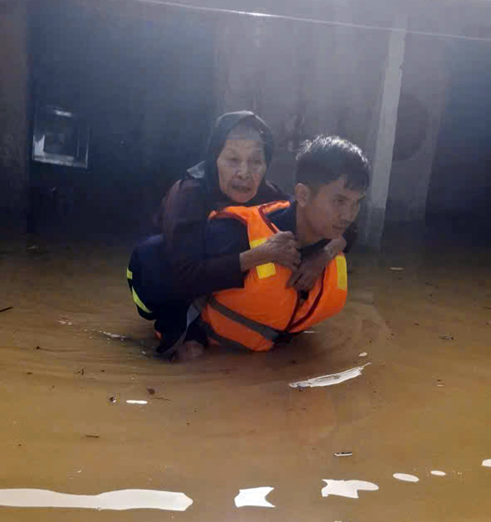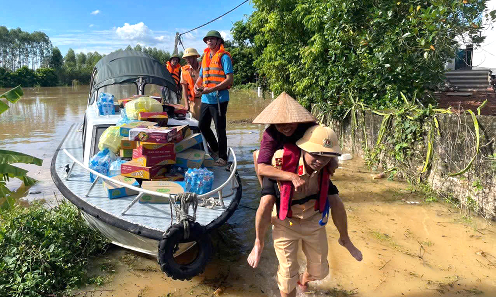 Nhiều cán bộ, chiến sĩ ngâm mình trong nước lạnh suốt đêm, không ăn, không ngủ, gió quật ngược, vật trôi đâm vào người… song vượt lên tất cả, họ vẫn bám trụ, cõng người già, bế em thơ, đưa từng người qua vùng nước dữ.