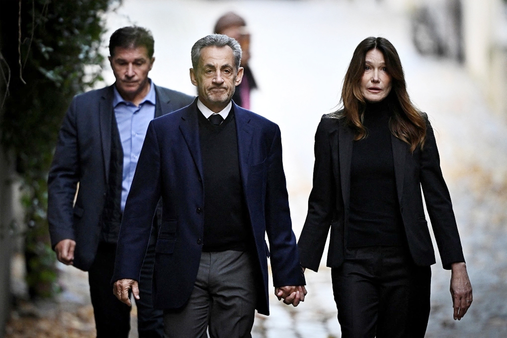 Hàng chục người ủng hộ và người thân đã đứng bên ngoài nhà cựu tổng thống từ sáng sớm 21/10, một số người giơ cao ảnh chân dung của ông. "Nicolas, Nicolas! Trả tự do cho Nicolas", họ hô vang khi ông nắm tay vợ, ca sĩ Carla Bruni, và rời khỏi nhà.