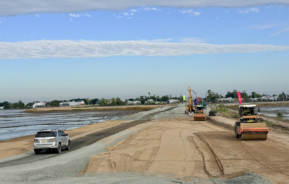 Dự án cao tốc Châu Đốc - Cần Thơ - Sóc Trăng đoạn qua địa bàn xã Vĩnh An, tỉnh An Giang đã hoàn thành cấp phối đá dăm đủ điều kiện thông xe kỹ thuật. |