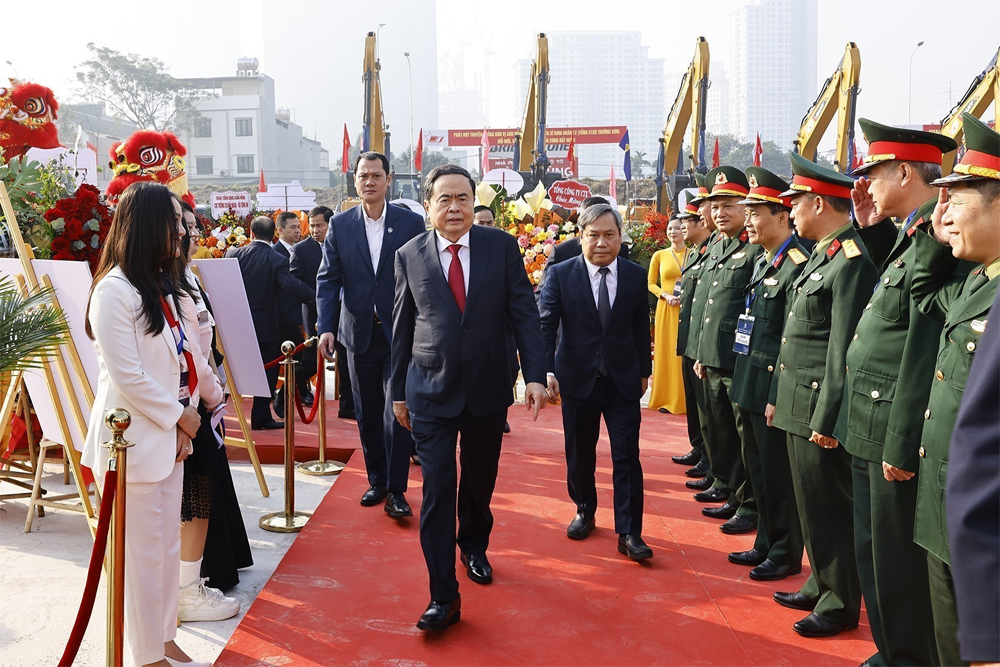 Chủ tịch Quốc hội Trần Thanh Mẫn dự lễ khởi công Dự án Đầu tư xây dựng Trục Đại lộ Cảnh quan sông Hồng. |