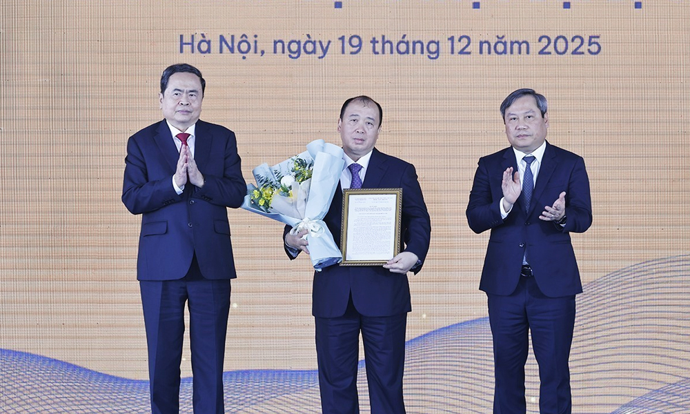 Chủ tịch Quốc hội Trần Thanh Mẫn trao Giấy phép đầu tư cho Liên danh các Nhà đầu tư Đại Quang Minh - Văn Phú - MIK Group - Thaco - T&T Group - Tập đoàn Hòa Phát. |