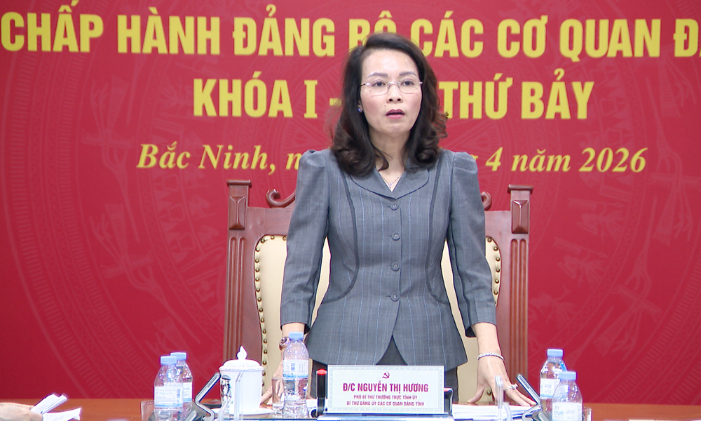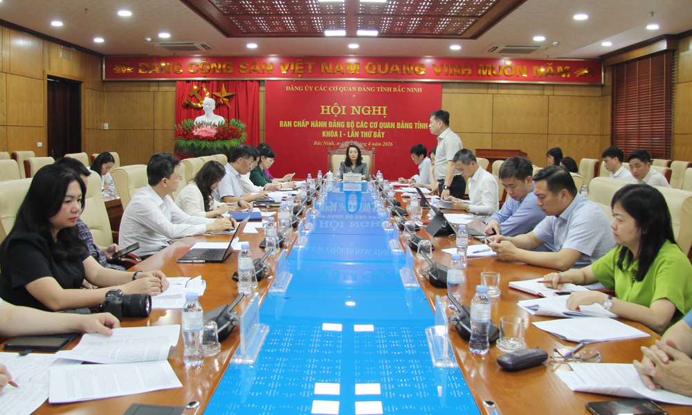BẮC NINH - Chiều 1/4, Ban Chấp hành Đảng bộ Các cơ quan Đảng tỉnh tổ chức Hội nghị lần thứ 7 (khóa I) nhằm thảo luận, cho ý kiến vào dự thảo Chương trình hành động thực hiện Nghị quyết Đại hội đại biểu toàn quốc lần thứ XIV của Đảng, triển khai phương hướng, nhiệm vụ công tác quý II năm 2026. Đồng chí Nguyễn Thị Hương, Phó Bí thư Thường trực Tỉnh ủy, Bí thư Đảng ủy Các cơ quan Đảng tỉnh chủ trì.