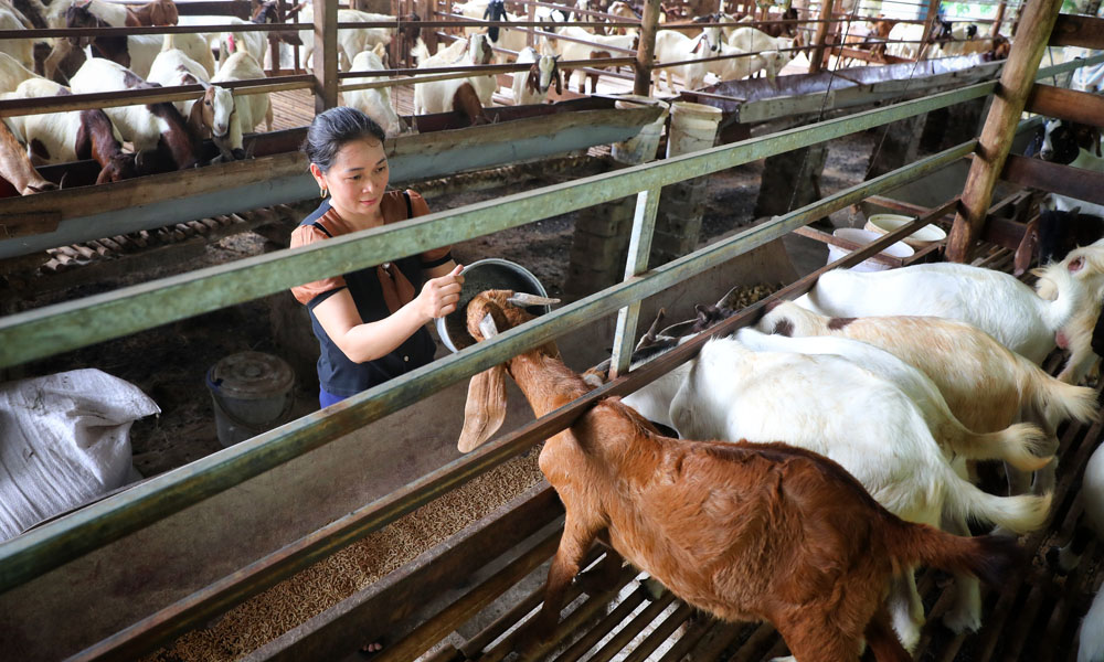 Mô hình chăn nuôi dê thương phẩm cho thu nhập cao, ổn định của gia đình chị Nguyễn Thị Thêm ở thôn Nam Đồng. |