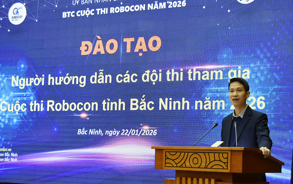 BẮC NINH - Chiều 22/1, Ban Tổ chức Cuộc thi Robocon tỉnh Bắc Ninh năm 2026 khai mạc khóa đào tạo dành cho người hướng dẫn các đội thi. Tham dự có đại diện Ban Tổ chức, Ban Thư ký Cuộc thi, các đơn vị đồng hành và gần 500 người hướng dẫn đến từ các trường học trên địa bàn tỉnh.