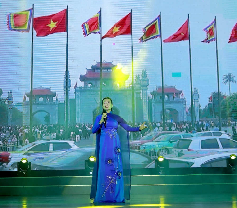 Tiết mục đơn ca nữ tại chương trình nghệ chào mừng Giỗ Tổ Hùng Vương. |