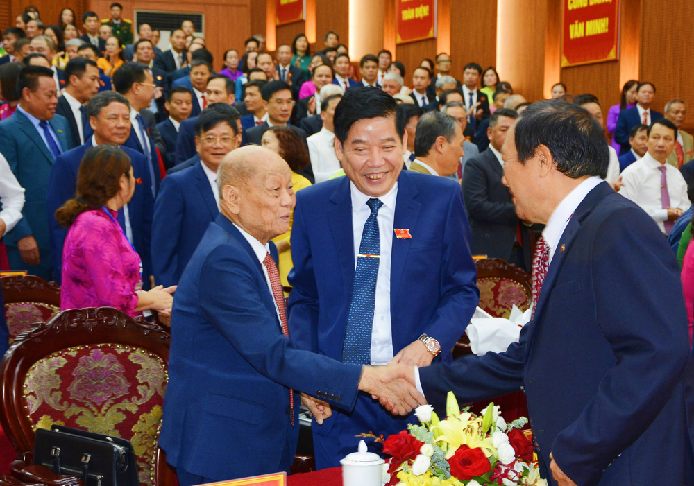 Nguyên Bí thư Tỉnh ủy Ngô Đình Loan và các đồng chí lãnh đạo, nguyên lãnh đạo tỉnh dự Đại hội đại biểu Đảng bộ phường Kinh Bắc lần thứ I, nhiệm kỳ 2025-2030. Ảnh: Xuân Me. |