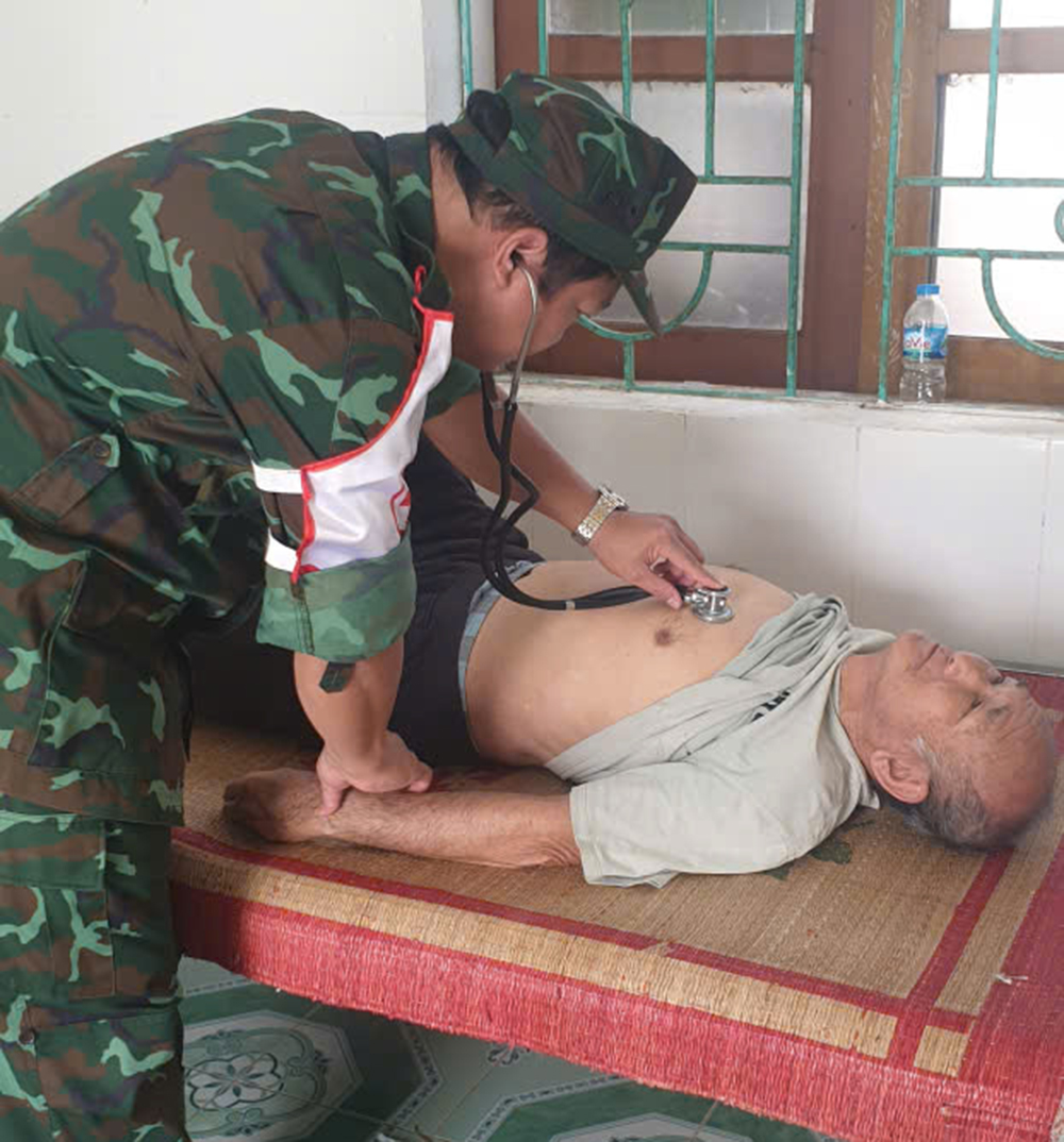 Bác sĩ quân y khám bệnh cho người dân xã Bố Hạ. |