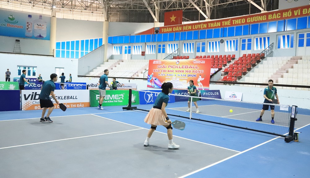BẮC NINH - Sáng 28/3, tại Nhà tập luyện và thi đấu thể dục thể thao tỉnh (phường Bắc Giang), Hội Nhà báo tỉnh phối hợp với Tạp chí Việt Nam Hương Sắc tổ chức Giải Pickleball Báo chí Bắc Ninh mở rộng lần thứ I năm 2026. Dự lễ khai mạc có lãnh đạo Hội Nhà báo tỉnh, Sở Văn hóa, Thể thao và Du lịch, Báo và Phát thanh, Truyền hình Bắc Ninh, Tạp chí Việt Nam Hương Sắc.
