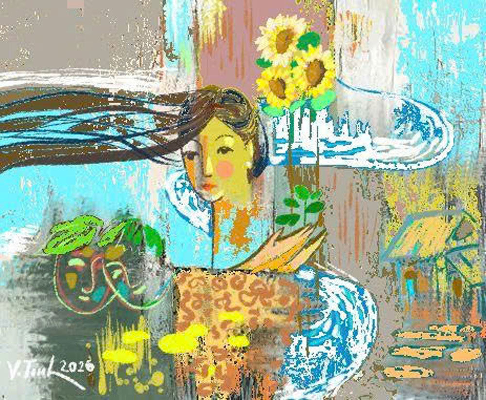 Mùa hè đến cùng với những bông hướng dương đầu tiên nở rộ. Vàng rực cả một góc sông. Tí và lũ trẻ chạy quanh, tiếng cười vang như chuông gió.