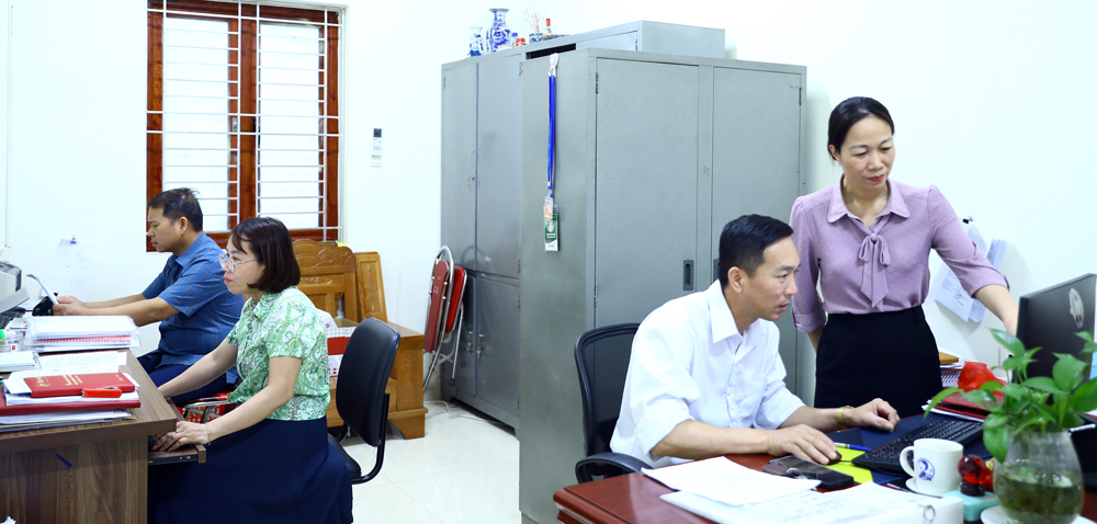 Cán bộ Ủy ban Kiểm tra Đảng ủy phường Chũ trao đổi nghiệp vụ công tác kiểm tra, giám sát. |