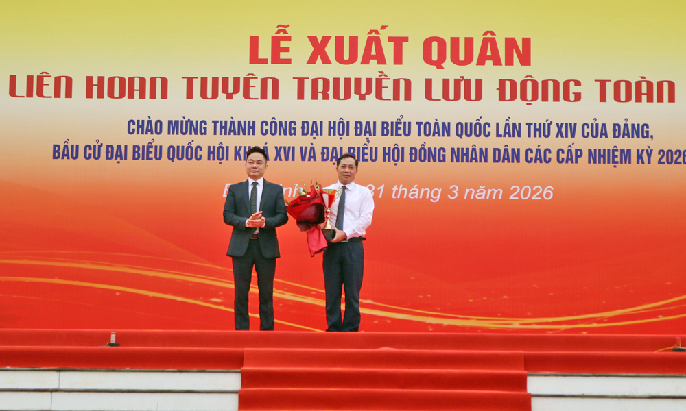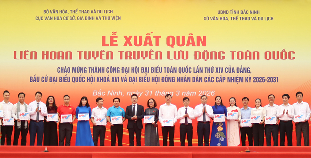 BẮC NINH - Ngày 31/3, tại Trung tâm Văn hóa - Triển lãm tỉnh (đường Nguyễn Thị Định, phường Bắc Giang), Bộ Văn hóa, Thể thao và Du lịch phối hợp với UBND tỉnh Bắc Ninh tổ chức Lễ xuất quân và lưu diễn Liên hoan tuyên truyền lưu động toàn quốc năm 2026. Đây là hoạt động thiết thực chào mừng thành công Đại hội đại biểu toàn quốc lần thứ XIV của Đảng và cuộc bầu cử đại biểu Quốc hội khóa XVI và HĐND các cấp nhiệm kỳ 2026 - 2031.