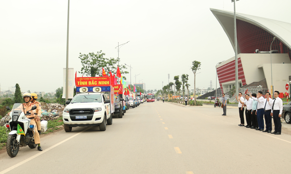 Từ tỉnh Bắc Ninh, các đoàn tuyên truyền lưu động khởi hành sang tỉnh Quảng Ninh. |