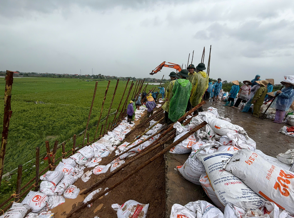 Đến thời điểm hiện nay, đoạn đê bị sạt trượt cơ bản đã được khắc phục, bảo đảm an toàn bước đầu. Dự kiến công tác xử lý, gia cố hoàn thiện trước 17 giờ cùng ngày.