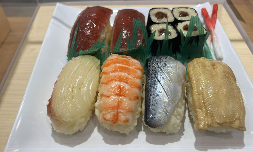 Khách tham quan khu vực trưng bày hiện vật ẩm thực shusi. |