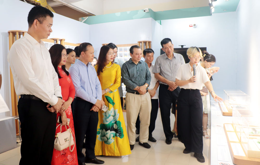 Đại biểu tham quan khu vực trưng bày bộ hiện vật ẩm thực shusi. |