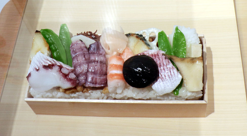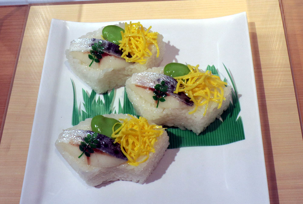 Món shusi tổng hợp nhiều vị nén khuôn. |