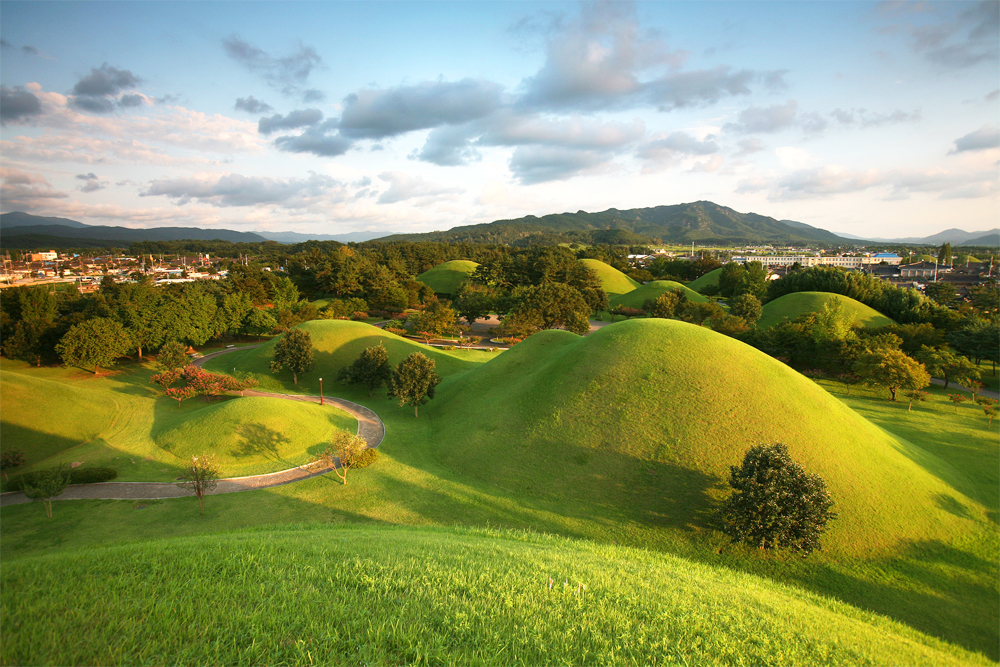 Trong số đó có thể kể đến Quần thể lăng mộ hoàng gia Daereungwon, nơi yên nghỉ của các vị vua và hoàng hậu triều Silla. Những gò mộ hình nón phủ cỏ xanh rì giữa lòng thành phố mang đến cảm giác trang nghiêm và tĩnh lặng.