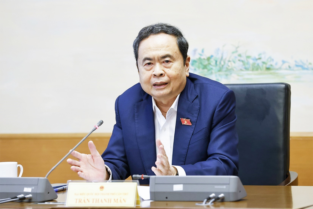 Chủ tịch Quốc hội Trần Thanh Mẫn, đại biểu Quốc hội thành phố Cần Thơ phát biểu. |