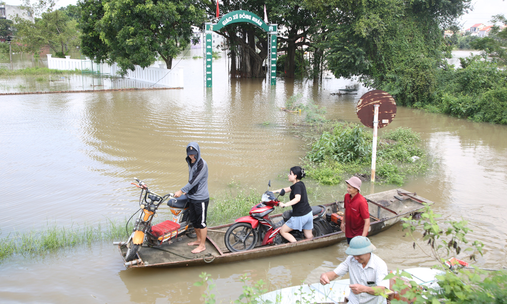 Do ảnh hưởng hoàn lưu vùng áp thấp suy yếu từ bão số 10, hai thôn Diên Lộc và Đồng Nhân xã Tam Giang bị nước sông Cà Lồ tràn vào ngập sâu từ 0,5-1,2m.