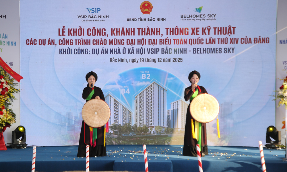 BẮC NINH - Ngày 19/12, tại Khu công nghiệp VSIP Bắc Ninh, đồng chí Trần Huy Phương, Phó Bí thư Tỉnh ủy, Chủ nhiệm Ủy ban Kiểm tra Tỉnh ủy; các Ủy viên Ban Thường vụ Tỉnh ủy: Lâm Thị Hương Thành, Phó Chủ tịch HĐND tỉnh; Đào Quang Khải, Phó Chủ tịch UBND tỉnh dự lễ khởi công dự án nhà ở xã hội VSIP Bắc Ninh - BelHomes Sky. Đây là 1 trong 4 công trình trên địa bàn tỉnh Bắc Ninh chào mừng Đại hội đại biểu toàn quốc lần thứ XIV của Đảng. Cùng dự có lãnh đạo một số sở, ngành liên quan.
