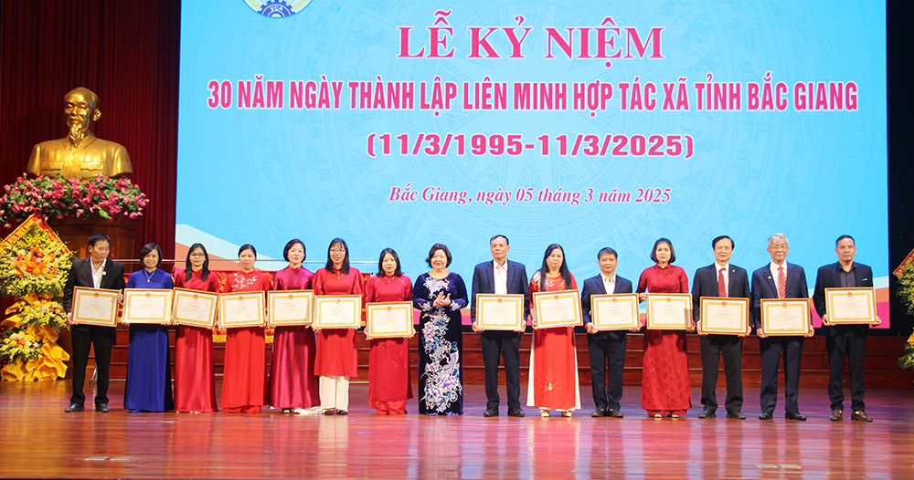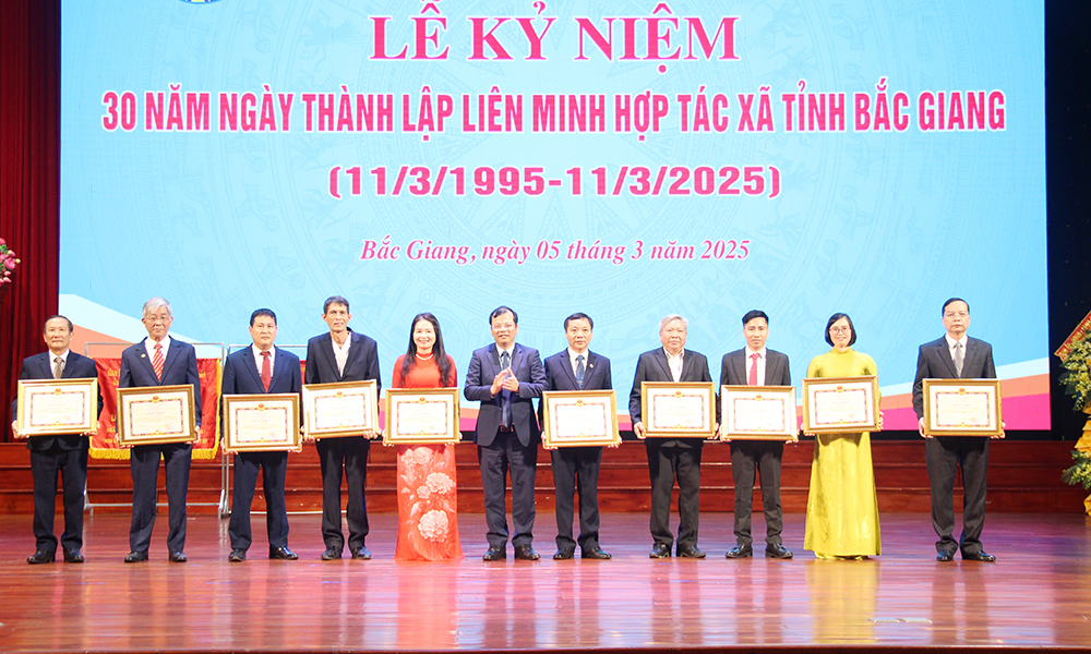 Nhân dịp này, Liên minh Hợp tác xã tỉnh Bắc Giang được nhận Cờ thi đua của Thủ tướng Chính phủ và Liên minh Hợp tác xã Việt Nam do có thành tích xuất sắc trong phong trào thi đua năm 2024 và được Tỉnh ủy, HĐND, UBND, Ủy ban Mặt trận Tổ quốc tỉnh tặng bức trướng. Ngoài ra, 24 tập thể, cá nhân được nhận Bằng khen của Chủ tịch UBND tỉnh, Chủ tịch Liên minh Hợp tác xã Việt Nam do có thành tích xuất sắc trong thực hiện nhiệm vụ năm 2024.