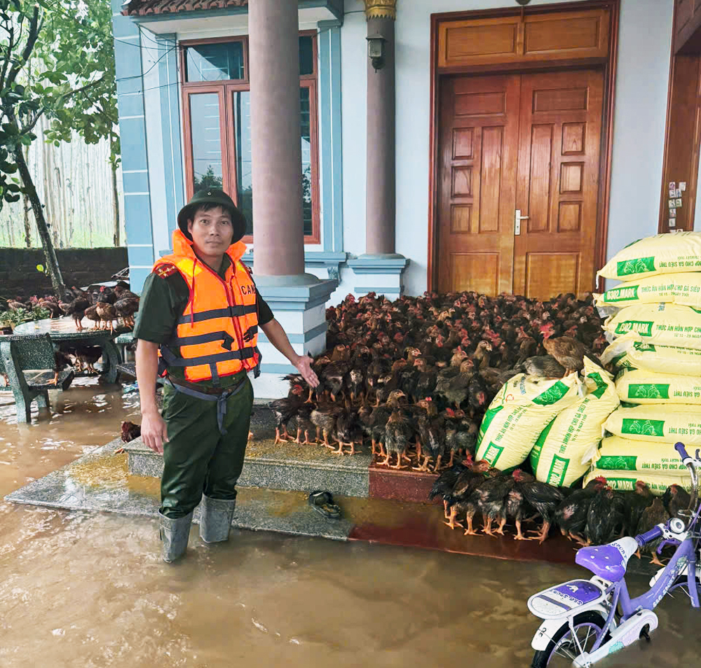 Công an xã Nhã Nam giải cứu tài sản, vật nuôi cho Nhân dân. |