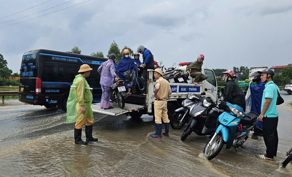 Những hình ảnh dưới đây ghi lại tinh thần “vì Nhân dân phục vụ”, ý chí “vượt nắng, thắng mưa” và tấm lòng tận tụy của lực lượng vũ trang Bắc Ninh trong những ngày mưa lũ: