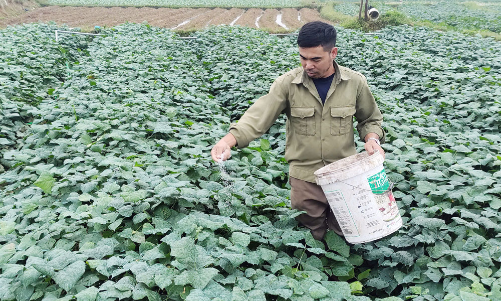 Nông dân xã Lục Nam chăm sóc cây củ đậu. |