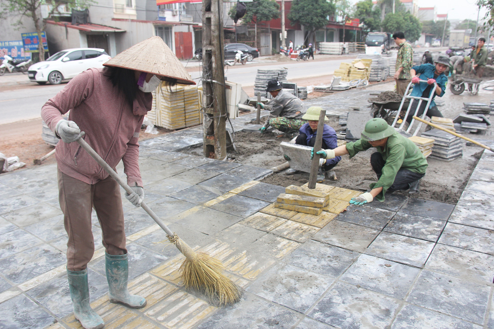 Đơn vị thi công lát vỉa hè tuyến đường QL 31 (đoạn Phượng Sơn - thị trấn Chũ - Hồng Giang). |