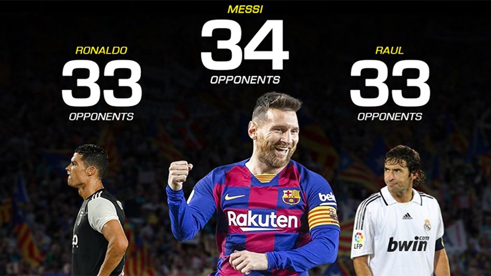 Với bàn tung lưới Dortmund, Messi trở thành cầu thủ đầu tiên ghi bàn vào lưới 34 đối thủ khác nhau tại đấu trường danh giá Champions League, vượt lên trên Ronaldo và Raul.