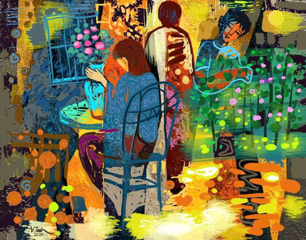 Một lúc sau, anh mới hỏi, rất khẽ: “Em thấy chưa?”. Loan gật đầu, nhưng cô không quay lại. Cô sợ rằng, chỉ cần quay lại thôi, cái cảm giác mong manh vừa kịp dâng lên trong lòng sẽ tan đi mất. Gió chiều thổi qua, mang theo một mùi hương rất nhẹ của ngày. Người con trai bước lại gần, ngồi xuống bên cạnh cô, im lặng. Loan nhìn ra khu vườn, nơi những bông hoa dường như đang cựa mình trong thứ ánh sáng dần nhạt đi.