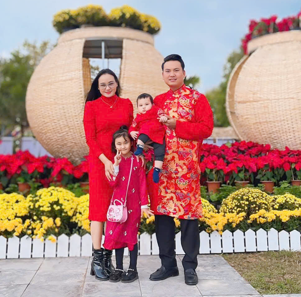 Nghệ sĩ Bá Chung cùng gia đình. |
