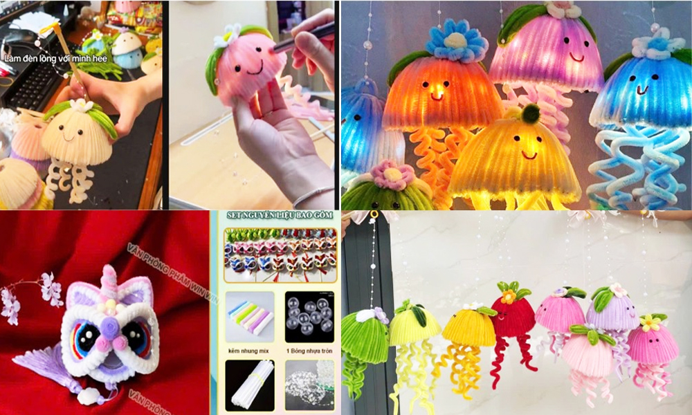 Nếu như lồng đèn ông sao hay cá chép gắn liền với ký ức tuổi thơ, thì Trung thu năm nay chứng kiến sự bùng nổ của những mẫu lồng đèn mới mẻ. Lồng đèn con sứa - sản phẩm handmade từ kẽm nhung là một trong những "hot trend" được giới trẻ săn đón rầm rộ.