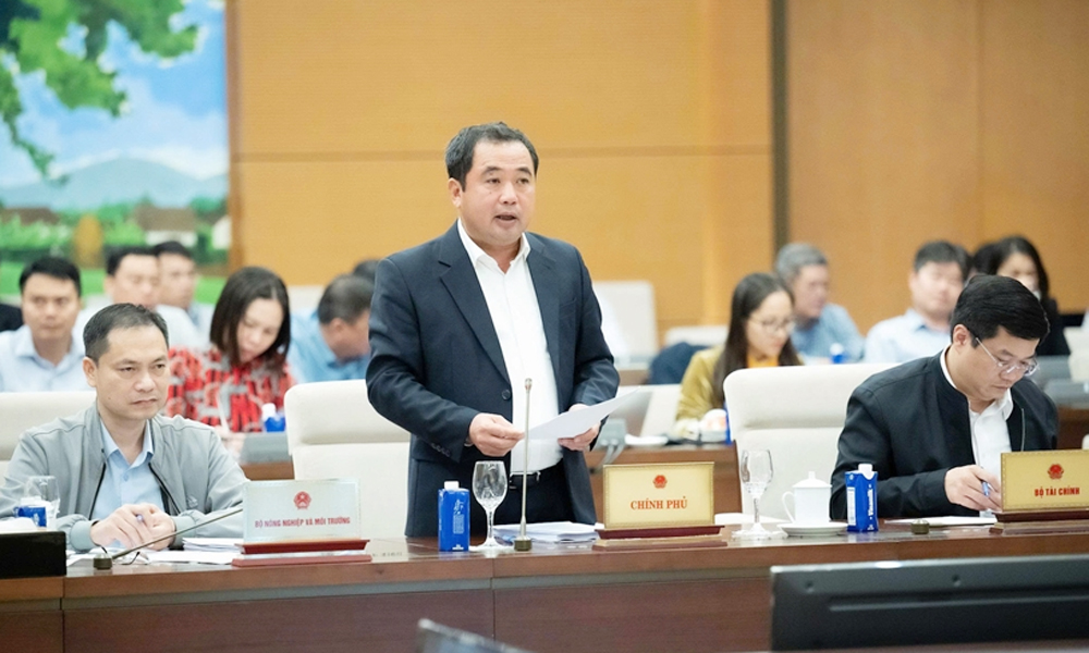 Bộ trưởng Bộ Nông nghiệp và Môi trường Trần Đức Thắng trình bày tờ trình về chương trình mục tiêu quốc gia xây dựng nông thôn mới, giảm nghèo bền vững, phát triển kinh tế-xã hội vùng đồng bào dân tộc thiểu số, miền núi. |