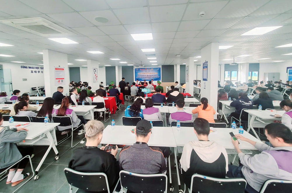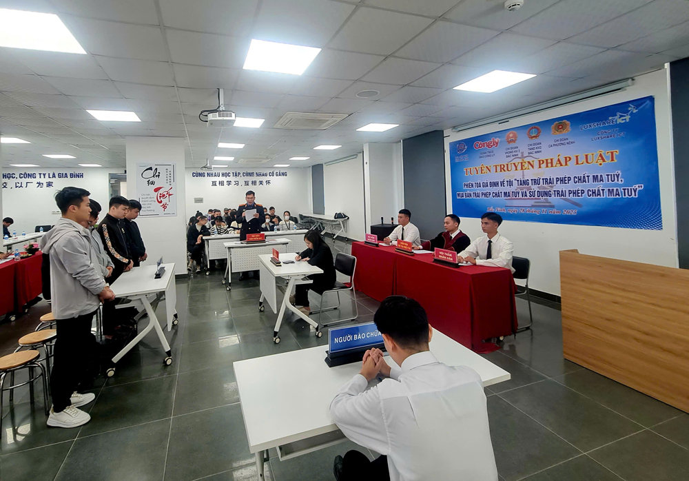 Phiên tòa giả định vụ án ma túy thu hút nhiều công nhân Công ty trách nhiệm hữu hạn Luxshare - ICT (Việt Nam) tham dự. |