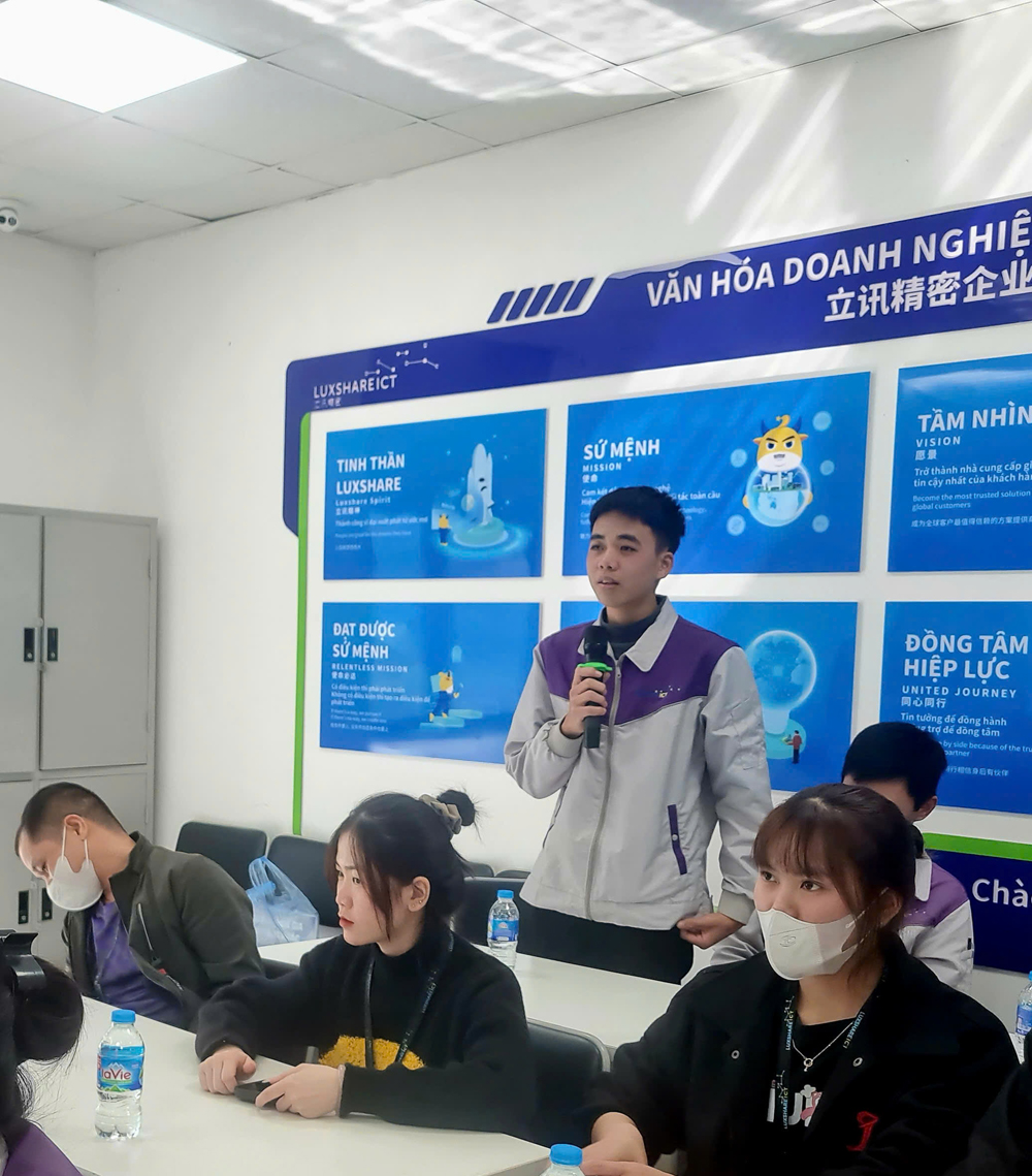 Công nhân Công ty trách nhiệm hữu hạn Luxshare - ICT (Việt Nam) tham gia giao lưu, trả lời câu hỏi liên quan quy định của pháp luật về phòng, chống tội phạm ma túy. |