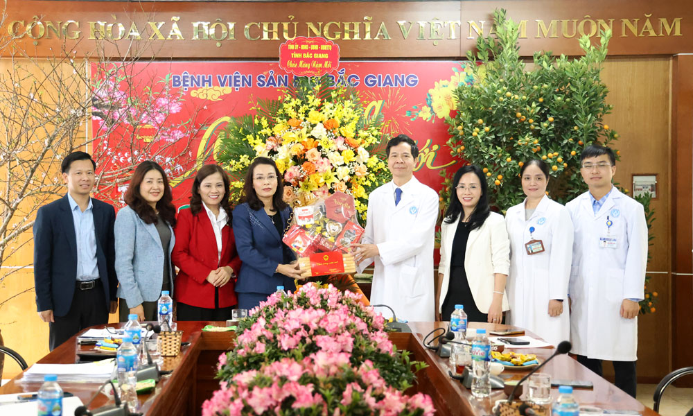 Đồng chí Nguyễn Thị Hương chúc Tết tại Bệnh viện Sản - Nhi Bắc Giang. |