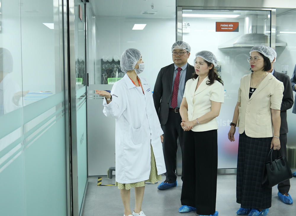 Các đại biểu tham quan khu sản xuất, chế biến và bảo quản thực phẩm của Công ty Trách nhiệm hữu hạn Welstory Việt Nam. |