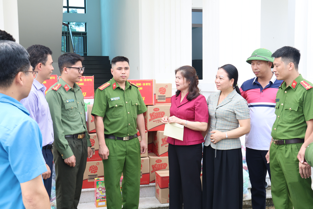 Đồng chí Lâm Thị Hương Thành cùng đoàn công tác trao quà hỗ trợ Nhân dân bị ảnh hưởng do bão lũ và động viên cấp ủy, chính quyền trong công tác phòng, chống thiên tai. |