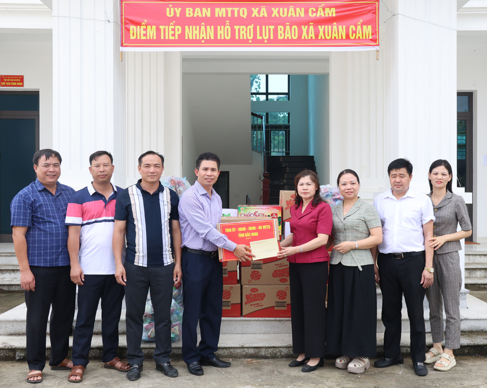 BẮC NINH - Sáng 12/10, đồng chí Lâm Thị Hương Thành, Ủy viên Ban Thường vụ Tỉnh ủy, Phó Chủ tịch HĐND tỉnh và lãnh đạo Ủy ban MTTQ tỉnh đến động viên, trao quà hỗ trợ cho Nhân dân bị ảnh hưởng bởi bão lũ trên địa bàn xã Xuân Cẩm.