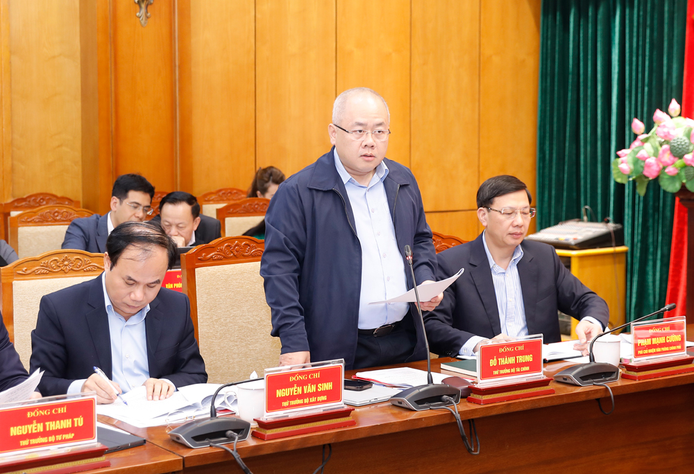 Đồng chí Nguyễn Văn Sinh, Thứ trưởng Bộ Xây dựng phát biểu tại buổi làm việc. |