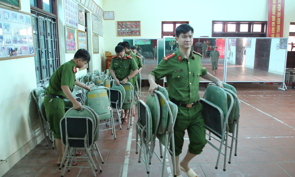 Công an phường Kinh Bắc hỗ trợ di dời tài sản tại nhà văn hóa khu phố Quả Cảm. |