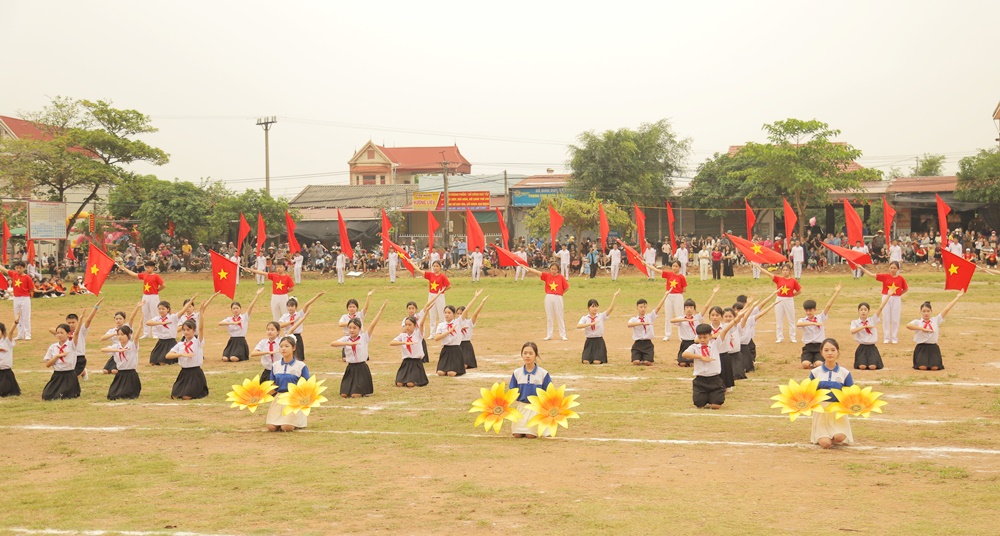 Lễ khai mạc Đại hội diễn ra long trọng, vui tươi, đầy màu sắc với màn diễu hành biểu dương lực lượng của các khối và đồng diễn ấn tượng thể hiện tinh thần đoàn kết, kỷ luật và khí thế quyết tâm cao. Đây không chỉ là sân chơi lành mạnh, bổ ích mà còn là dịp để phát hiện, tuyển chọn những vận động viên tiêu biểu, xuất sắc tham gia Đại hội Thể dục thể thao cấp tỉnh. Qua đó, tiếp tục khẳng định vai trò của thể dục thể thao trong việc nâng cao sức khỏe, xây dựng đời sống văn hóa và thúc đẩy phát triển kinh tế - xã hội địa phương.